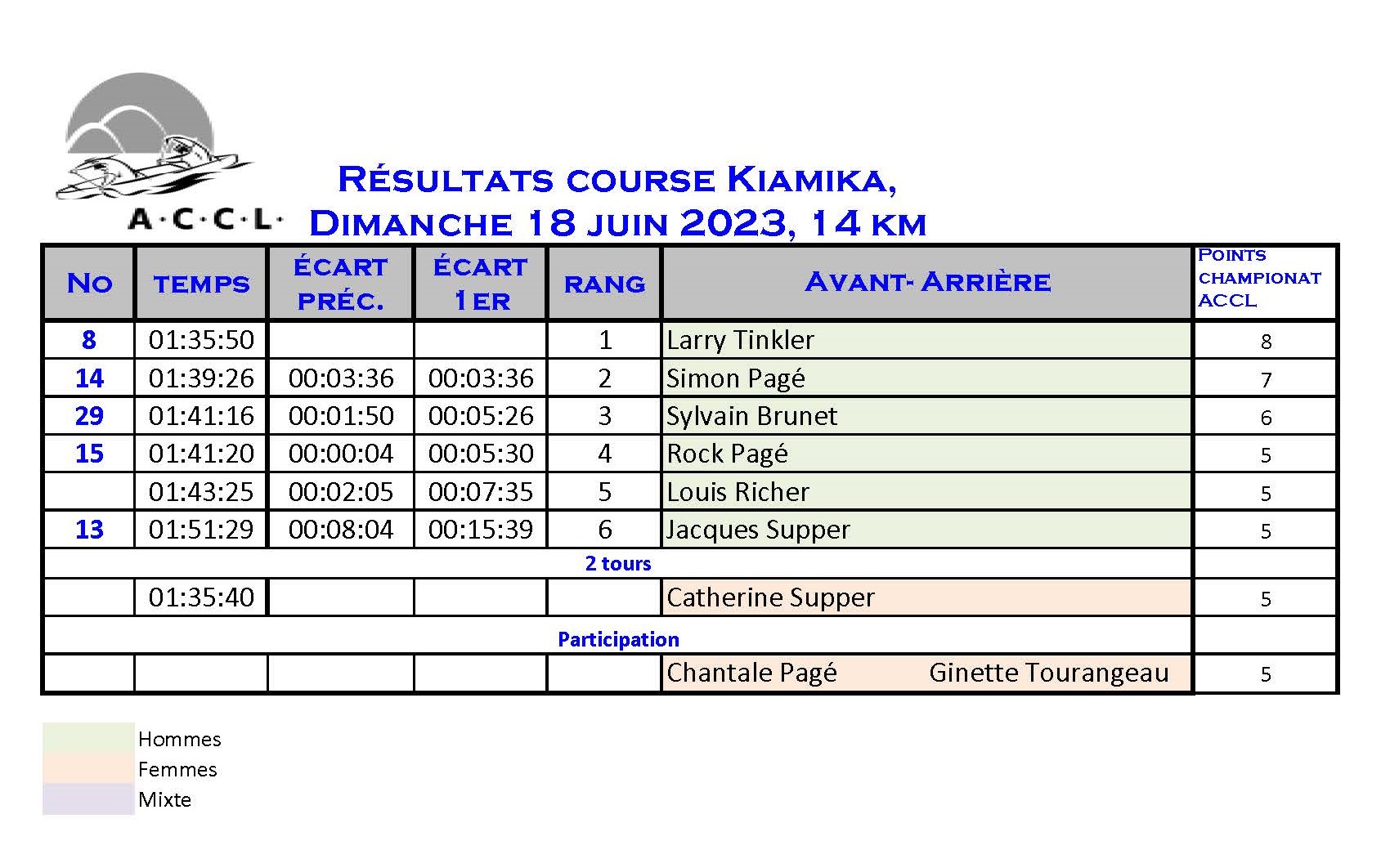 Résultats des courses Résultat de la 67e classique de canot de la Lièvre. Les 16-17 et 18 août 2024Résultat à venir. Course du mercredi 17 juillet 2024 Course du mercredi 10 juillet 2024 Course du 3 juillet 2024 Course du mercredi 26 juin 2024 Course du mercredi 19 juin 2024 Course du mercredi 12 juin 2024 Course du 9 juin 2024, C1 à Kiamika Course du mercredi 5 juin 2024 Course au village, L'Ascension, Dimanche 2 juin